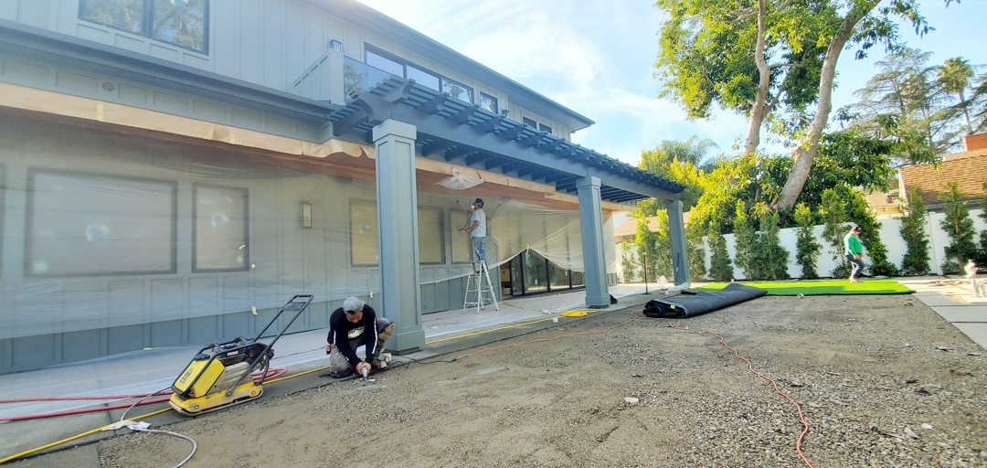 House exterior: paint, new gate, patio, railing